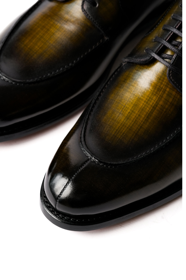 Olive Patina Derby Shoes Sale