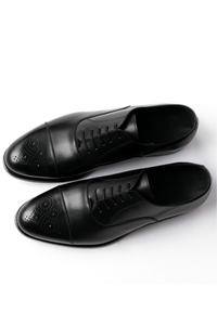 The Regal Noir Oxford Brogue Shoes are a statement of timeless refinement and superior craftsmanship. Expertly handcrafted in premium jet-black leather, these shoes feature a classic cap-toe design enhanced with subtle brogue perforations for an elevated and distinguished look.
