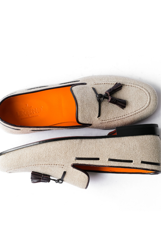 Inside, the loafers offer a bright orange leather lining and padded insole for exceptional comfort and bold interior flair. The lightweight sole provides smooth movement and lasting durability, making these loafers a stylish companion for summer suits, linen trousers, or elevated casual wear.