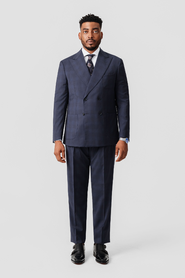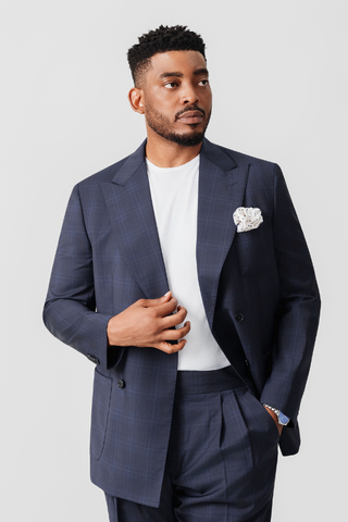 Inform when this item available: Navy Windowpane Double-Breasted Suit